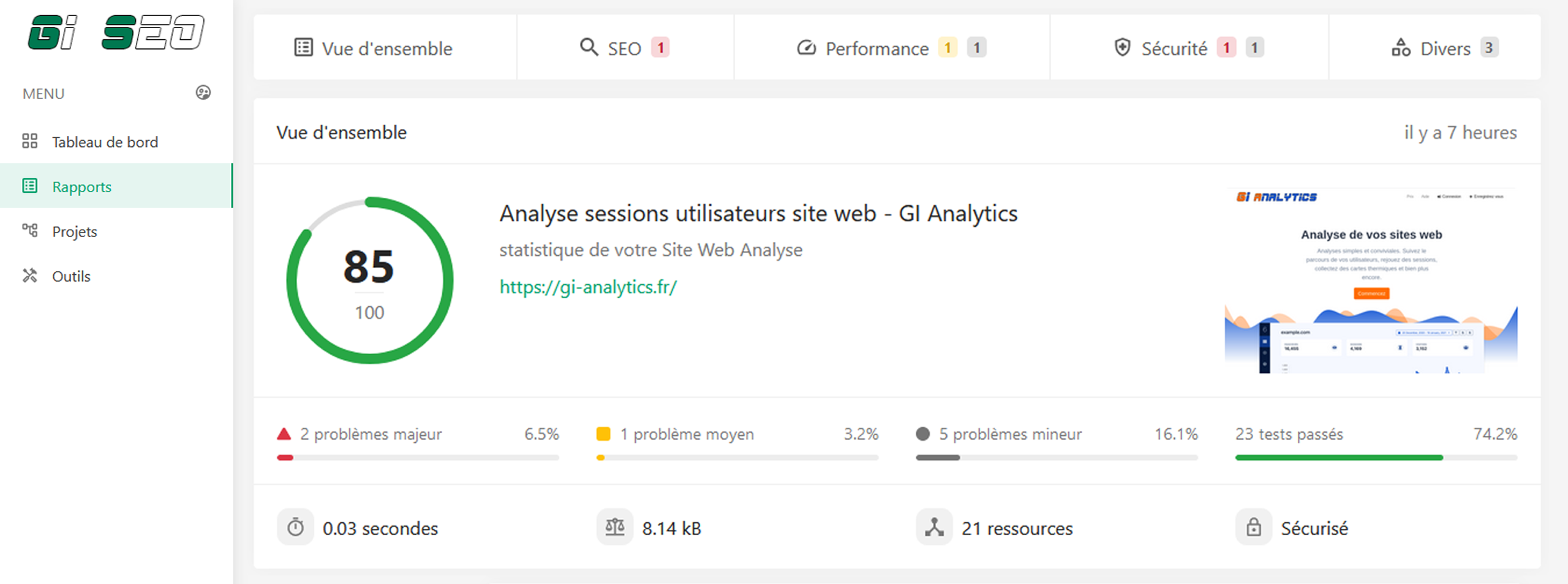 Des rapports qui vous aident à améliorer votre présence sur les moteurs de recherche.
